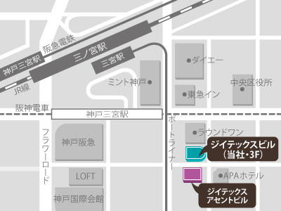 ジイテックスビル 〒651-0088 神戸市中央区小野柄通6-1-3 (当社3階)